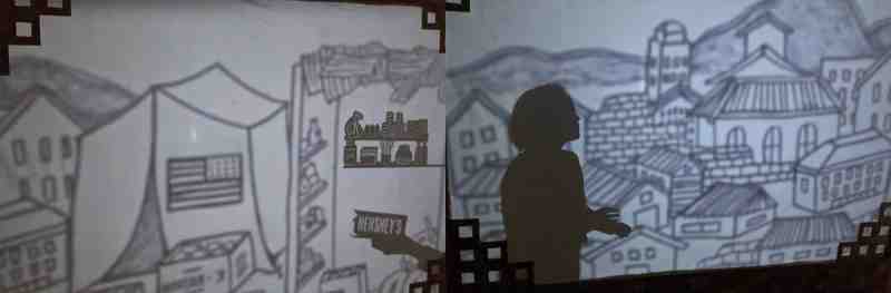 Sunwoo illustrated these projection graphics and shadow puppets made from polycarbonate sheets. The oral history recording from Sunwoo’s grandmother used in the show was the main inspiration for Sunwoo’s depiction of Korea in the 1950s.