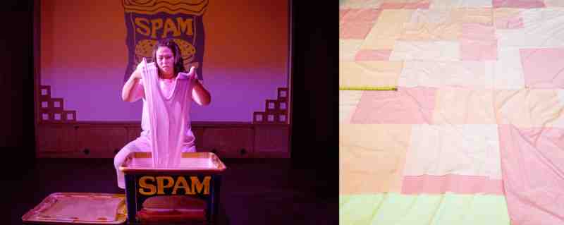 Specially Processed American Me, a new multimedia theater work written by former PCC Creative Fellow, Jaime Sunwoo, and co-directed by Sunwoo and Karim Muasher, features multiple layers of design, music, video projection, mask work, and shadowplay. It investigates the legacy of SPAM, the infamous canned meat, its significance in the Asia-Pacific, and its influence on Asian cuisine, unraveling the stories of three generations of women in Sunwoo’s family. The many ingredients that make the show’s flavor richer and denser are seasoned with history, both cultural and historical, as well as Sunwoo’s personal history in artmaking.