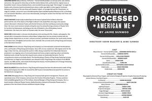 Specially Processed American Me is a surreal autobiographical performance by former PCC Creative Fellow and Affiliated Artist Jaime Sunwoo using SPAM, the canned meat, as a portal into her Asian American upbringing and her family's experiences of the Korean War. Co-produced by Dixon Place, Ping Chong and Company and Free Rein Projects, Specially Processed American Me premiered at Dixon Place from January 27 - February 19, 2022. For a behind-the scenes look at the show's creation process, read more here.