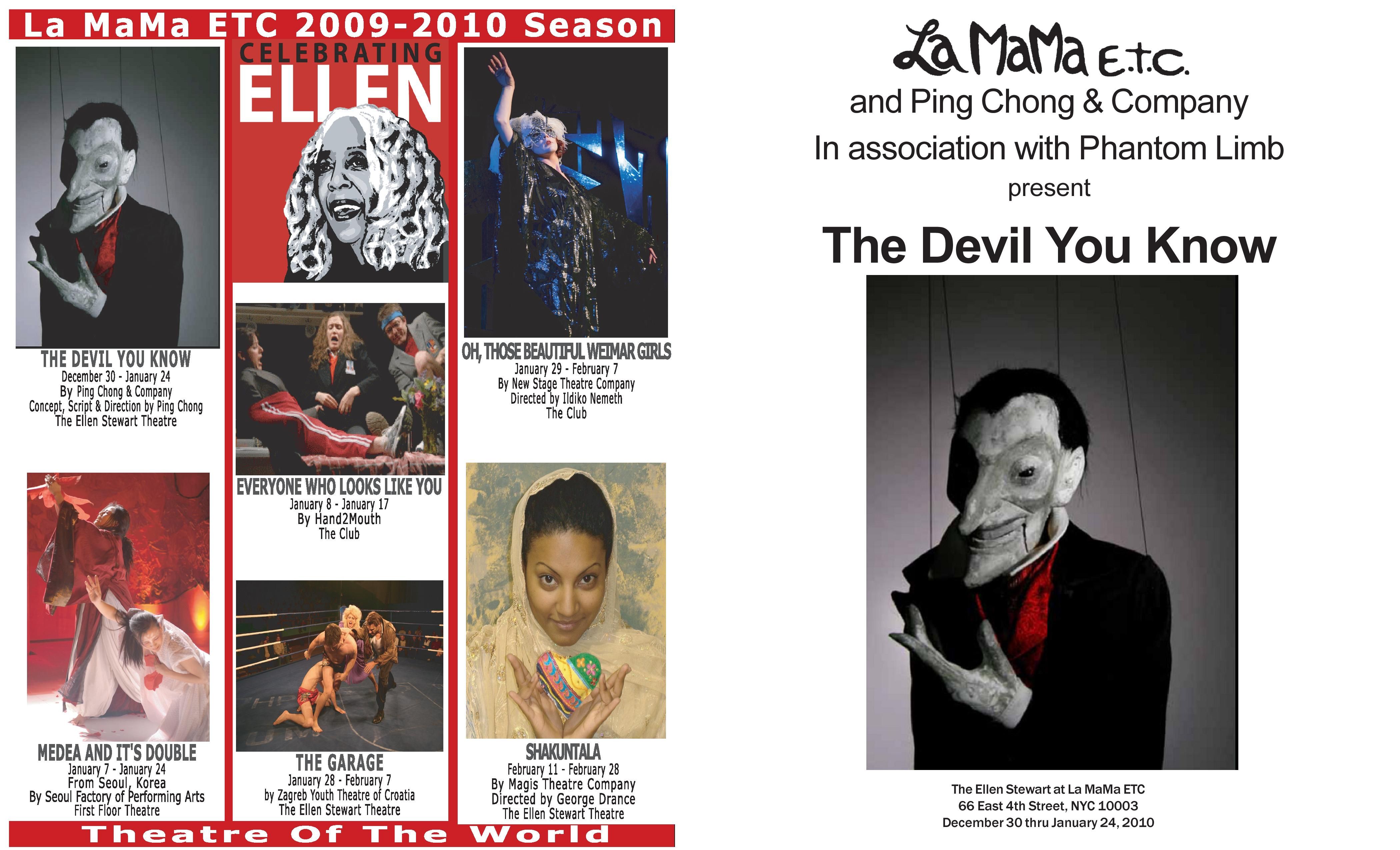 The Devil You Know is a tale of desperate deals, second chances and democracy's eternal promise of renewal. Stephen Vincent Benét’s classic American Faust fable The Devil and Daniel Webster, transformed with the help of dozens of marionettes, video projections and an original score by Erik Sanko.